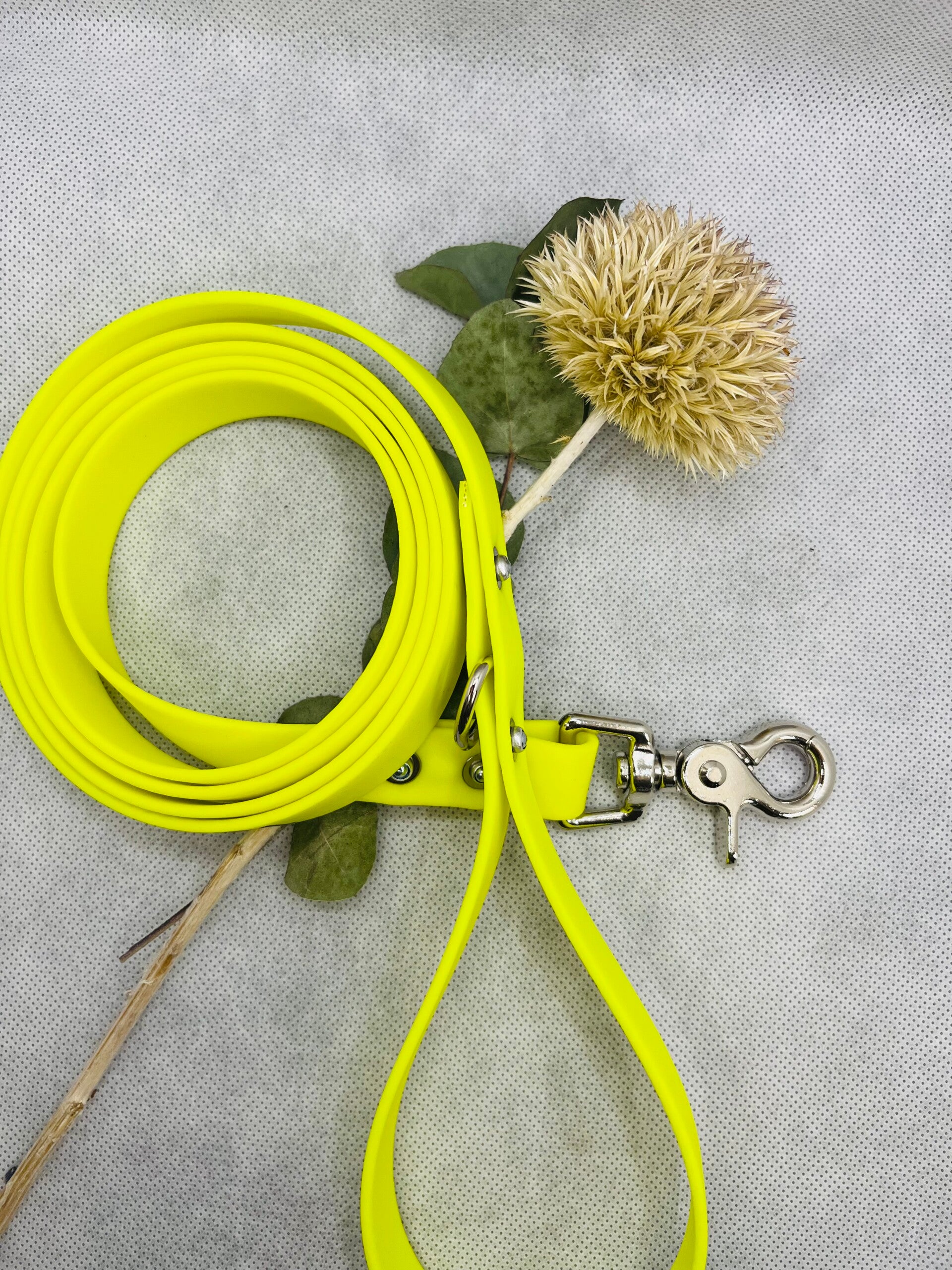 Die Handleine ist ca 1,40m lang und besitzt am Ende eine Handschlaufe. Die Leine eignet sich sehr gut als Spazierleine im Alltag. Wenn sich der Hund im Freilauf befindet, kann die Leine mittels eines D Rings an der Handschlaufe praktisch um den Körper des Hundeführers getragen werden.